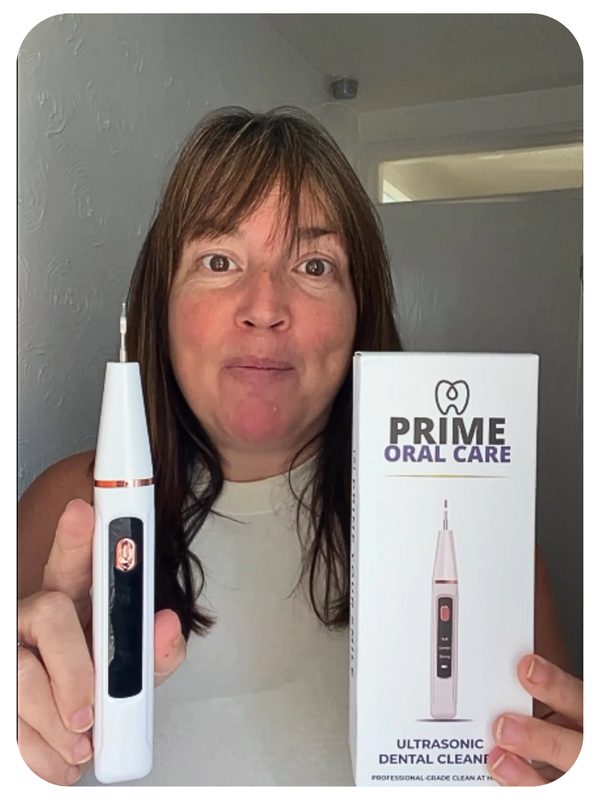 "The tartar on my teeth was gone in just minutes! It’s super easy to use, and the before and after difference is crazy!"