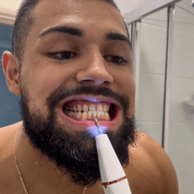 See the difference! Our Ultrasonic Dental Cleaner removes stubborn plaque and tartar, restoring your teeth to a cleaner, healthier state. No more buildup,just a confident, radiant smile!